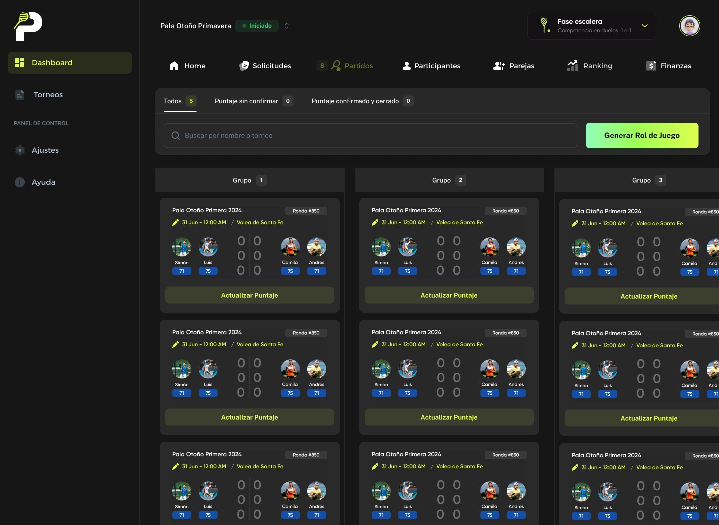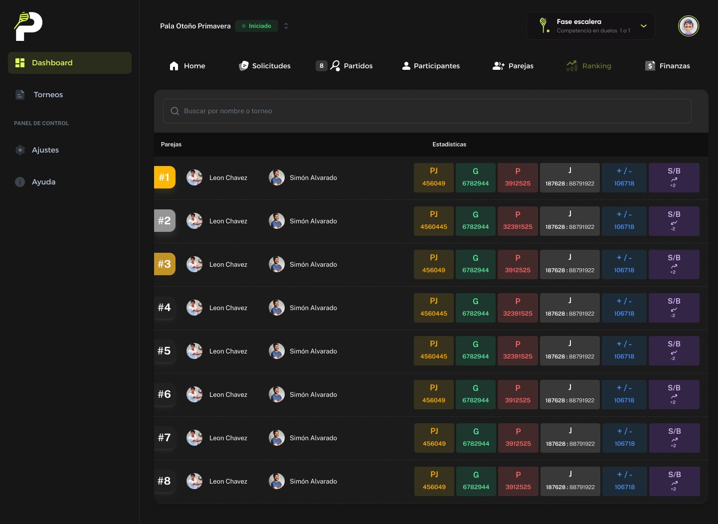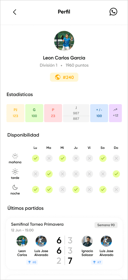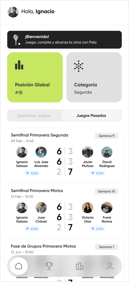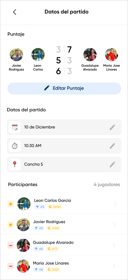 Los jugadores gestionan sus partidos y rankings desde una sola app
