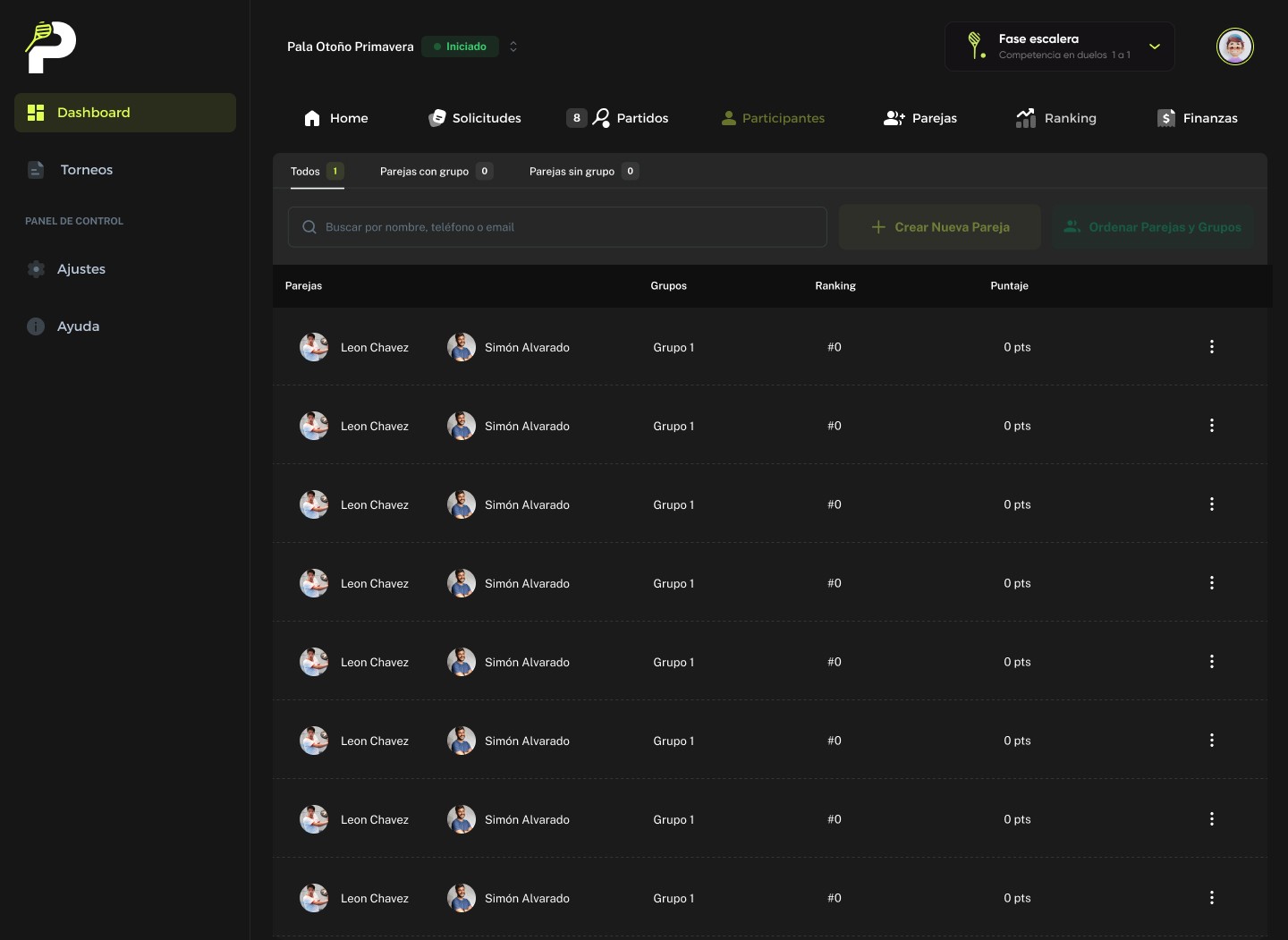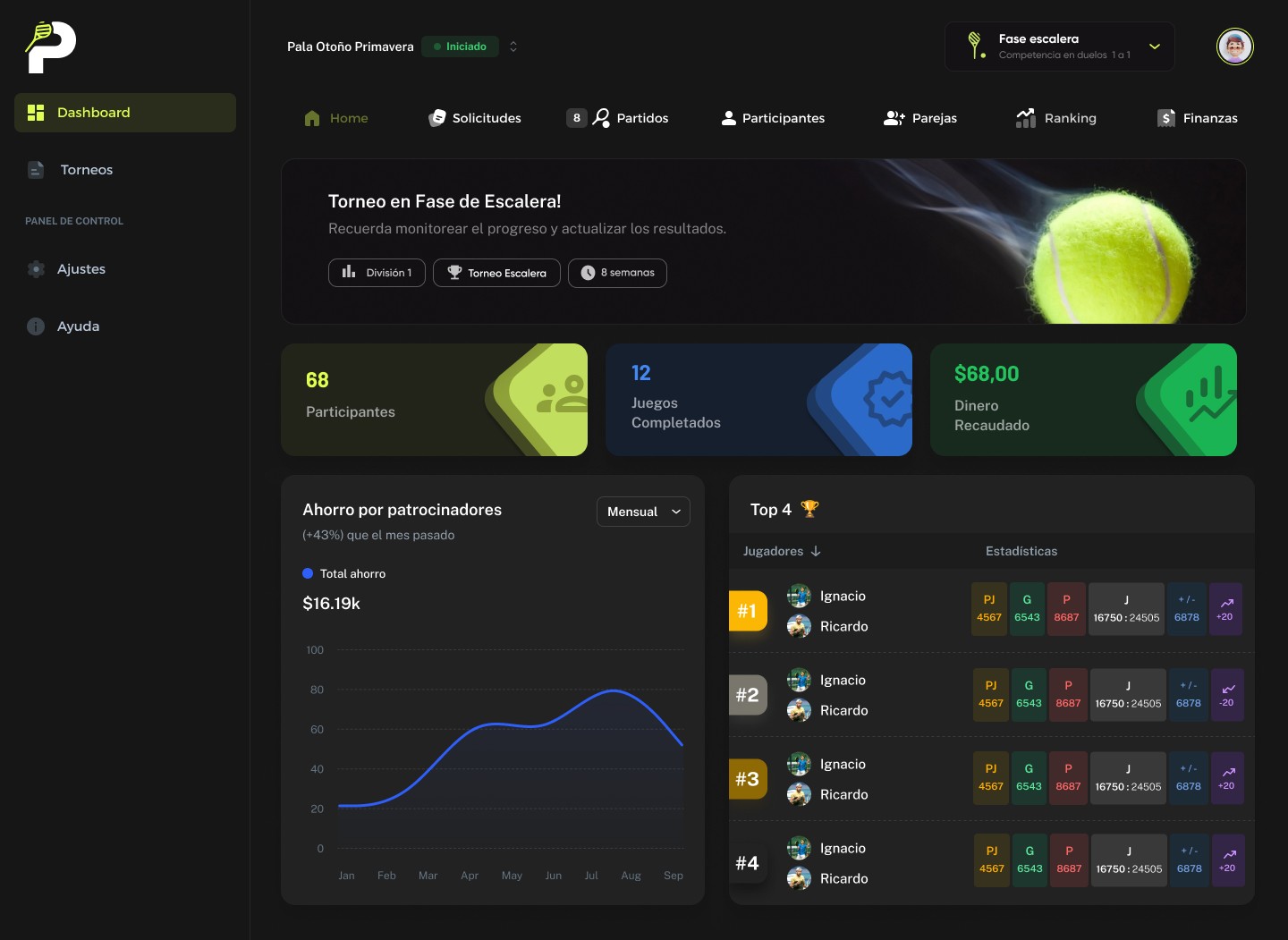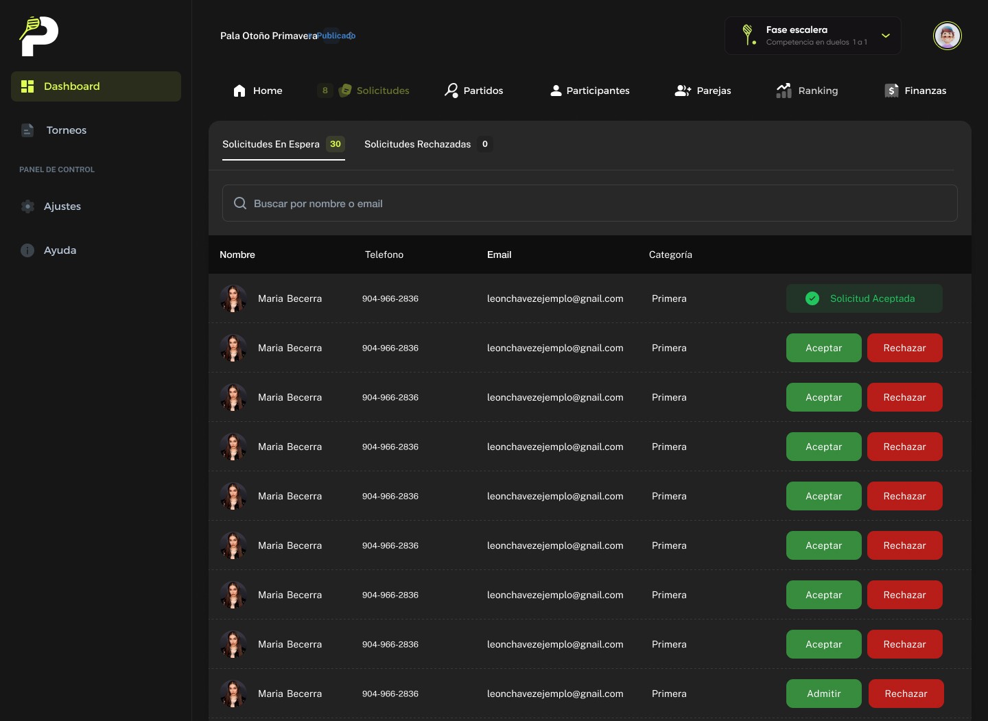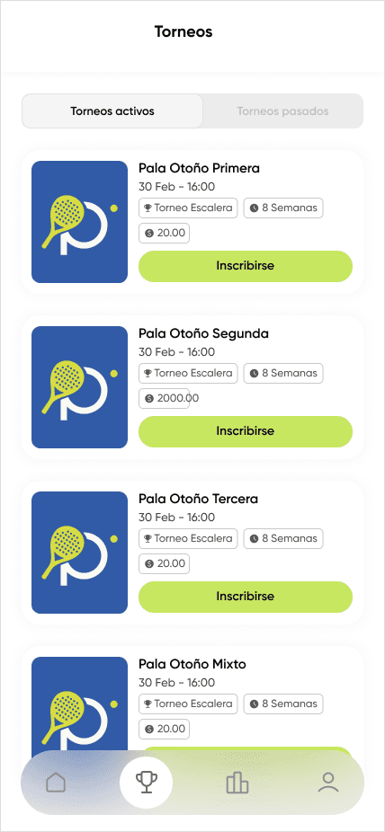 Gestiona todos los torneos y ligas desde un mismo lugar.